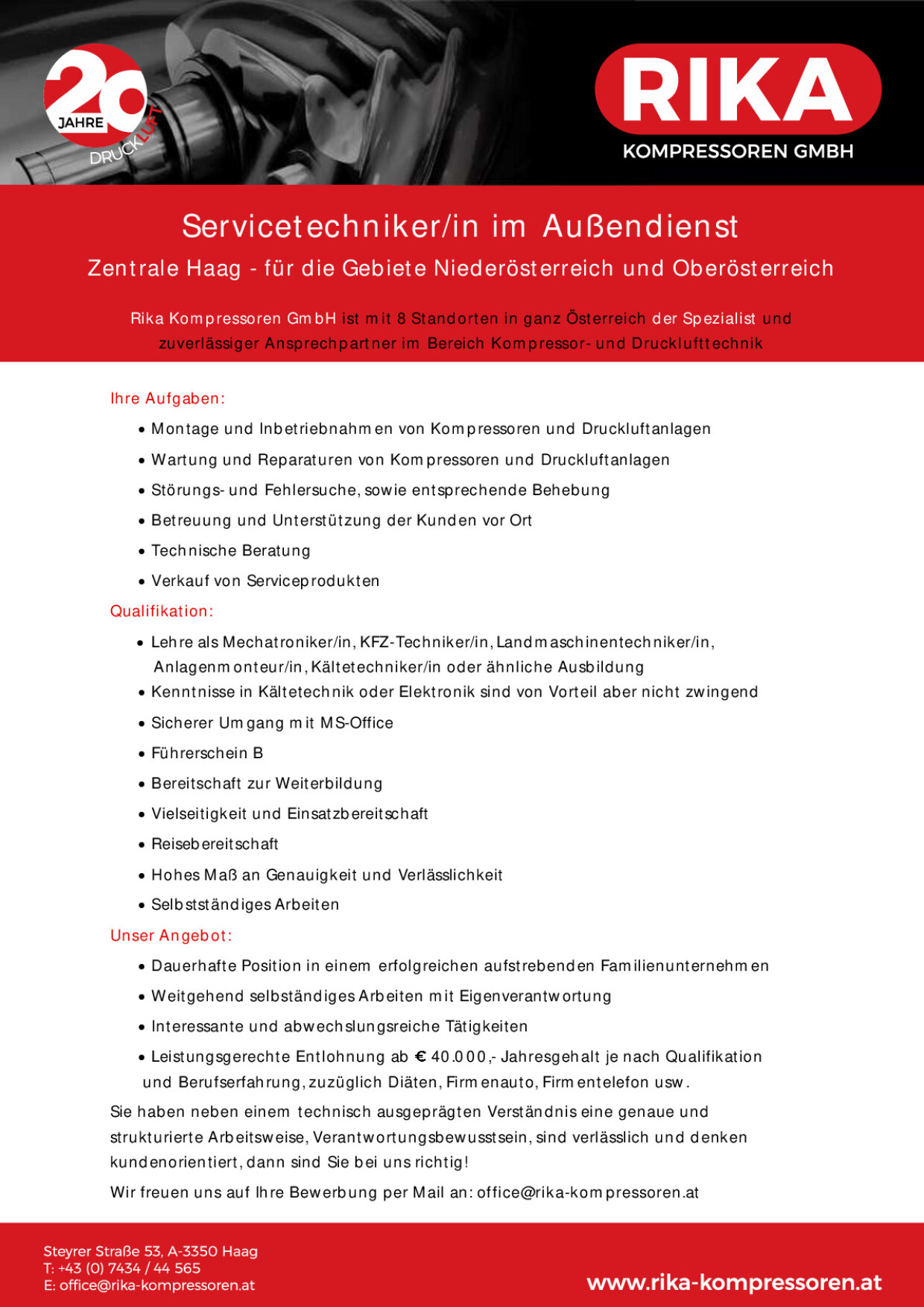 Wir freuen uns auf Ihre Bewerbung an office@rika-kompressoren.at